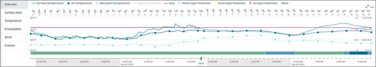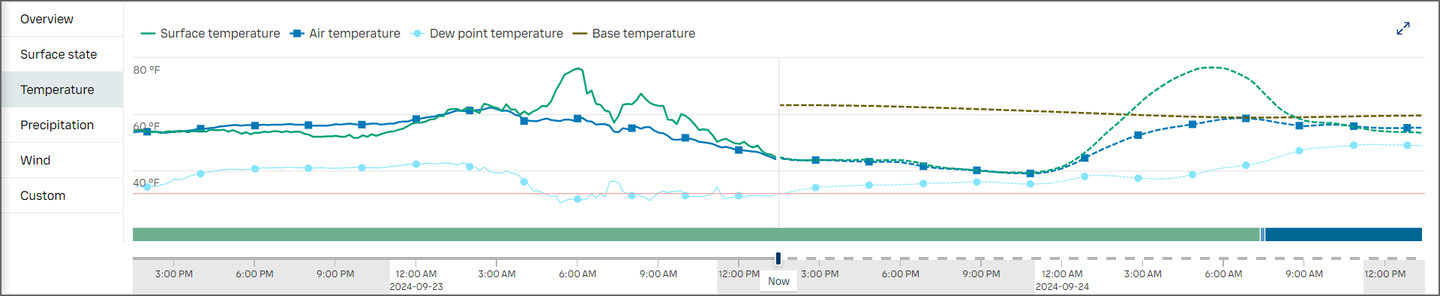 For example, selecting Temperature shows details on the temperature measurements from the past 24 hours and a forecast for